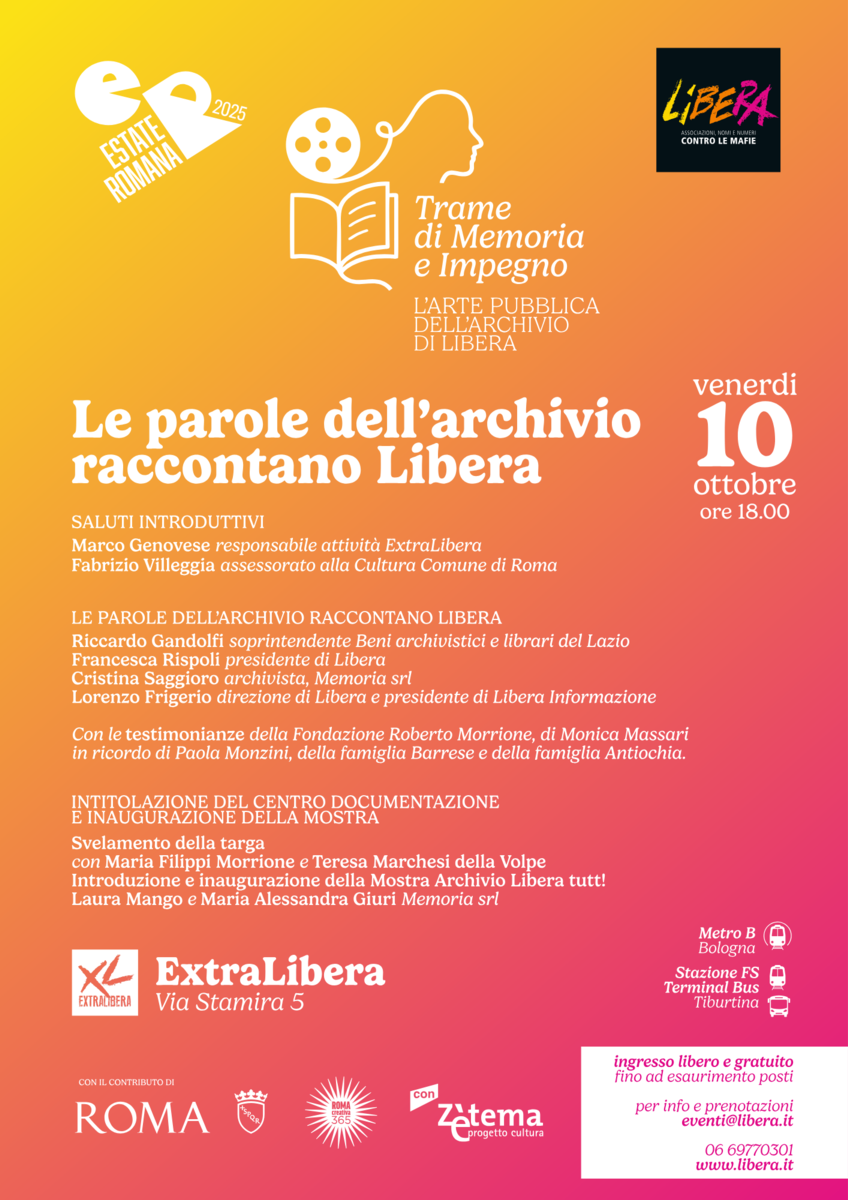 Per ulteriori informazioni e prenotazioni, è possibile scrivere a eventi@libera.it o telefonare al numero 06/69770361.