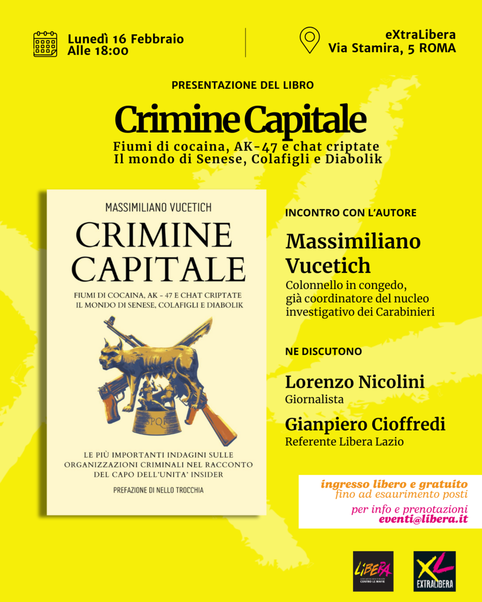 Per ulteriori informazioni e prenotazioni possibile scrivere a eventi@libera.it o telefonare al numero 06/69770361.L'evento inizierร alle 18.30, รจ consigliato l'arrivo in tempo utile per prendere posto in sala