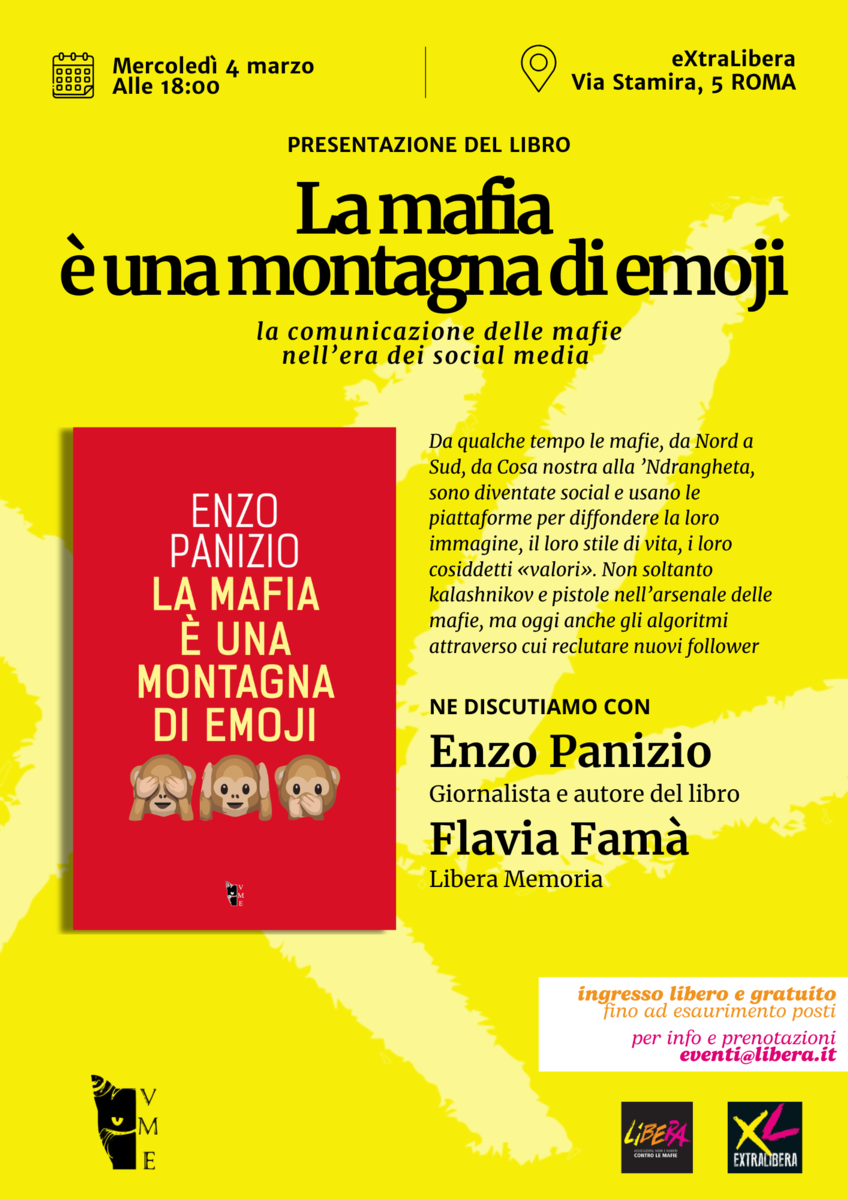 A presentare il libro insieme all'autore Enzo Panizio, giovane giornalista e scrittore, sarร presente ๐๐น๐ฎ๐๐ถ๐ฎ ๐๐ฎ๐บร di Libera Memoria, figlia di Serafino Famร , vittima innocente di mafia. La presentazione del libro sarร l'occasione per riflettere insieme sulle ๐ป๐๐ผ๐๐ฒ ๐๐๐ฟ๐ฎ๐๐ฒ๐ด๐ถ๐ฒ ๐ฑ๐ถ ๐ฐ๐ผ๐บ๐๐ป๐ถ๐ฐ๐ฎ๐๐ถ๐ผ๐ป๐ฒ ๐ฎ๐ฑ๐ผ๐๐๐ฎ๐๐ฒ ๐ฑ๐ฎ๐น๐น๐ฒ ๐ผ๐ฟ๐ด๐ฎ๐ป๐ถ๐๐๐ฎ๐๐ถ๐ผ๐ป๐ถ ๐บ๐ฎ๐ณ๐ถ๐ผ๐๐ฒ, ๐ฒ ๐ถ๐น ๐น๐ผ๐ฟ๐ผ ๐๐๐ถ๐น๐ถ๐๐๐ผ ๐ฑ๐ฒ๐ถ ๐๐ผ๐ฐ๐ถ๐ฎ๐น ๐บ๐ฒ๐ฑ๐ถ๐ฎ. Da qualche tempo le mafie, da Nord a Sud, da Cosa nostra alla โNdrangheta, sono diventate social e usano le piattaforme per diffondere la loro immagine, il loro stile di vita. Non soltanto kalashnikov e pistole nellโarsenale delle mafie, ma oggi anche gli algoritmi attraverso cui reclutare nuovi follower. Alla mafia della segretezza, del profilo basso, dei ยซpizziniยป, del tenore di vita umile, per non dare nellโocchio, si รจ sostituita una mafia che fa propaganda di sรฉ, sfoggiando gioielli, belle donne, automobili, ville sfarzose e tutto ciรฒ che รจ lusso e che serve ad attirare le giovani generazioni.